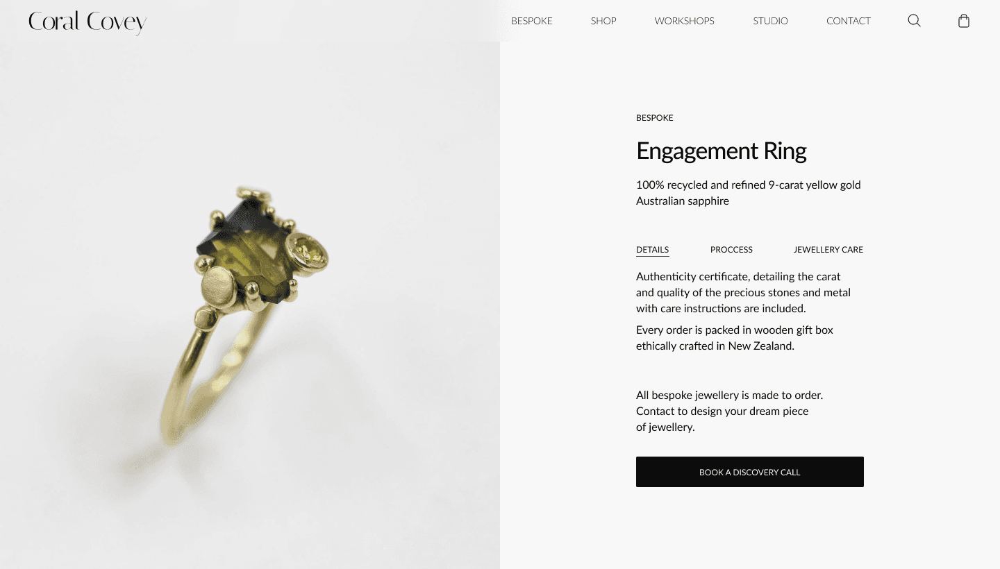 Ethical jewellery brand founded by Laura Deakin. The redesign focused on turning the site from a static portfolio into a more engaging platform that encourages client enquiries.